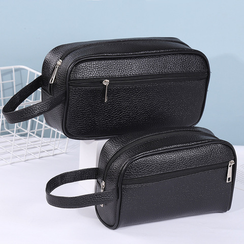 Toptan erkekler küçük klasik Minimalist Pu deri Dopp kitleri iş seyahat tuvalet organizatör makyaj yıkama çantası